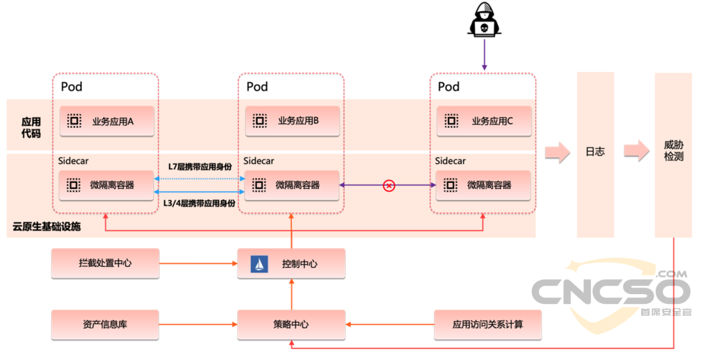 同时借鉴Istio sidecar的思想,将给基于零信任的网络微隔离下沉至每个工作负载的Pod中,这样从架构层面带来几个好处: